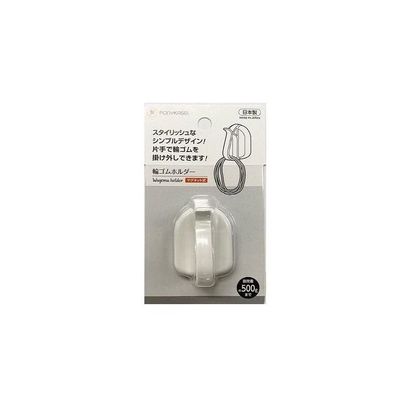 • Size: Approx. 2.0 x 1.6 inches (52 x 40 mm); Load Capacity: Approx. 17.6 oz (500 g); Color/White; Material: ABS resin; Product Name: Rubber band holder; Magnetic; Uses: Holder organization; Rubber holder hook; Keywords: Wagomu Horuda, Tunetta, Hanging Fuku; Manufacturer: Pony Kasei Kogyo Co. 007 □ Quantity: 1