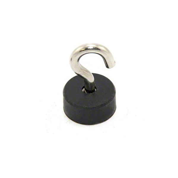 Rubber Coated Pot Magnet with M5 Hook for DIY, Engineering, Manufacturing, Hanging and Holding Applications - 22mm dia x 10mm thick - 2.4kg Pull