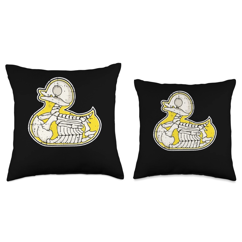 Rubber Duck Skeleton Lazy Halloween Costume Funny Ducky Throw Pillow