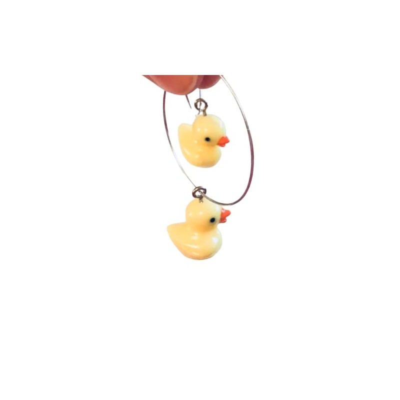 | Color: | Silver hoops, yellow duck charm |