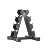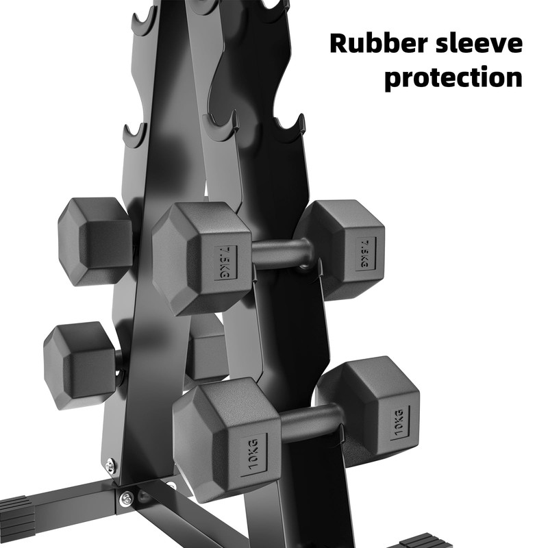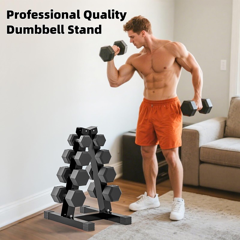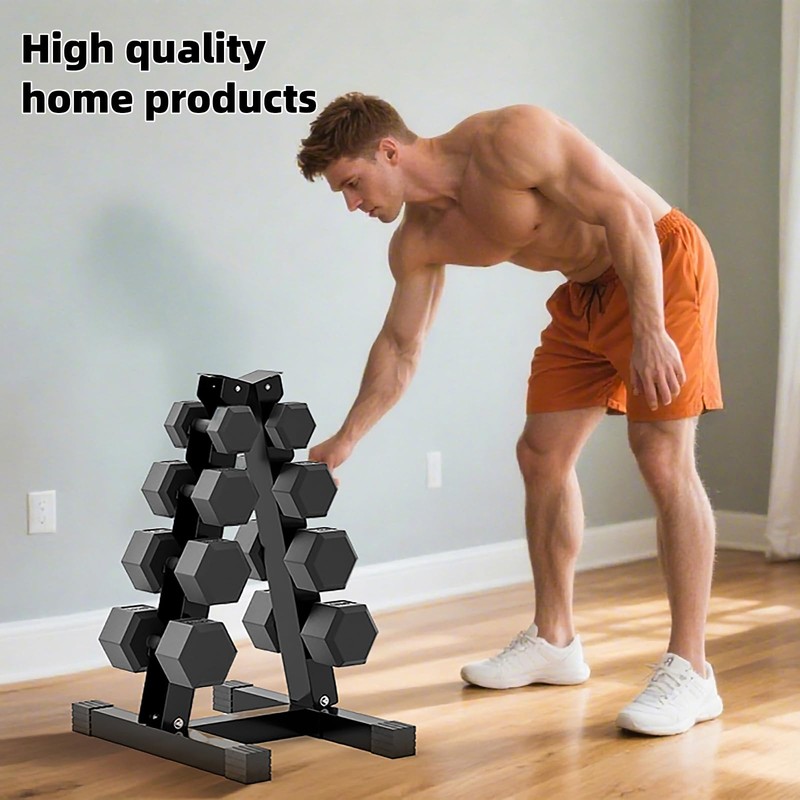 - Hexagon Design: The innovative hexagonal shape prevents rolling, making storage easy and keeping your workout area organized. The multi-sided, rubber-encased heads ensure that your dumbbells remain securely in place when not in use.