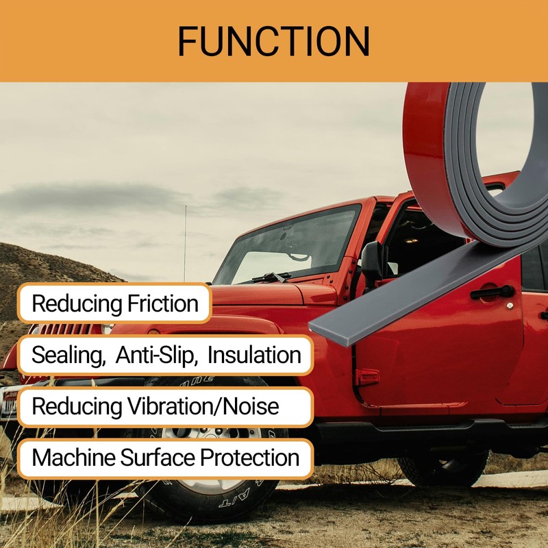 - QUALITY RUBBER MATERIAL: Solid rubber strip made of high quality silicone rubber material with a strong adhesive backing. Tear resistance, wear resistance, flexible, aging resistance and high/low temperature resistance, which is quite different from the ordinary sponge or foam strips
