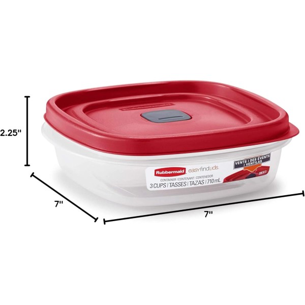 Rubbermaid- 3 CUP- Easy Find Vented Lid Food Storage Containers- 4 PACK