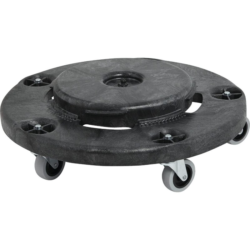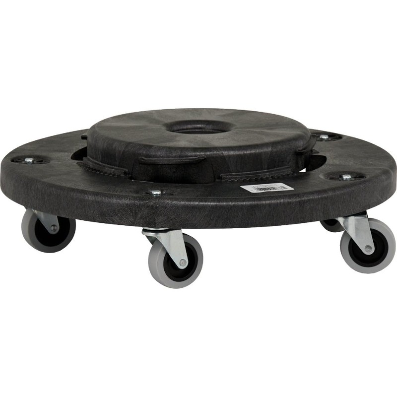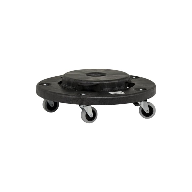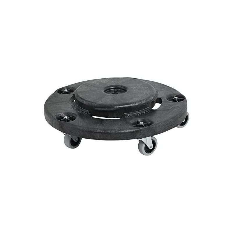 - Brute, Black trash can dolly, commercial grade, Twist on/off, rugged durable, 5 casters, fits 20, 32, 44 & 55 gallon round brute containers, holds up to 350 lbs, pdq tray