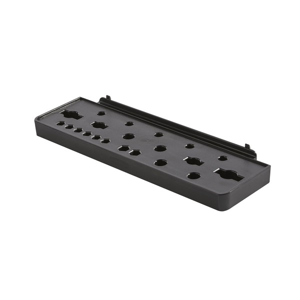- Tool tray slides into the Rubbermaid FastTrack Wall Panel for easy installation and customization