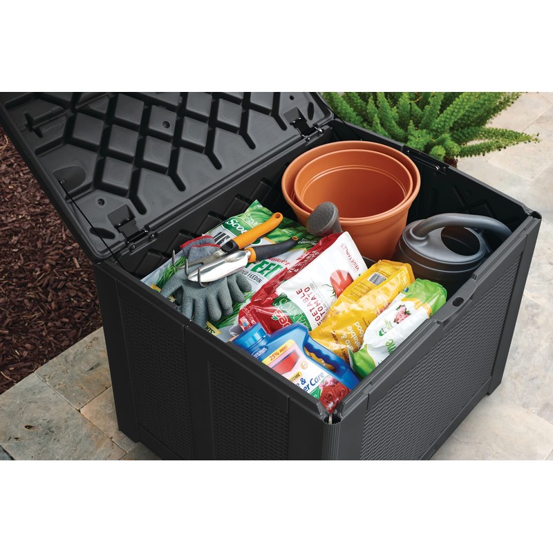 Rubbermaid Medium Resin Outdoor Storage Deck Box, 74 Gal., Charcoal, with Decorative Basketweave Pattern for Home/Garden/Patio/Pool/Back-Yard/Lawn