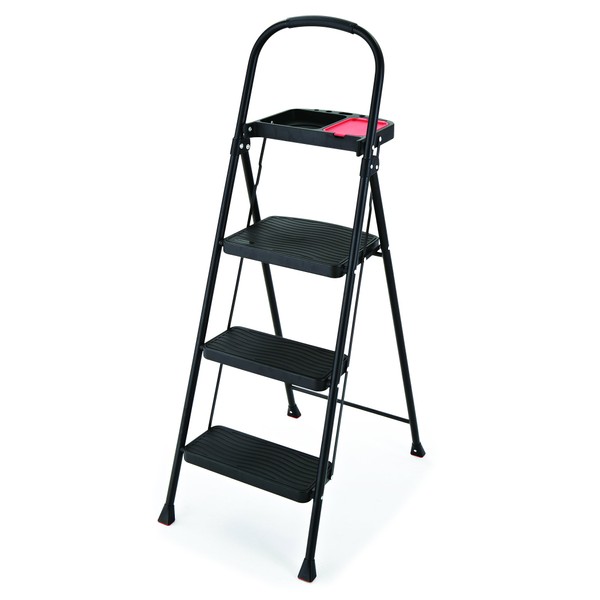 - Durable and lightweight 3-step steel stepstool with project tray and large steps