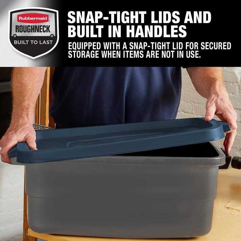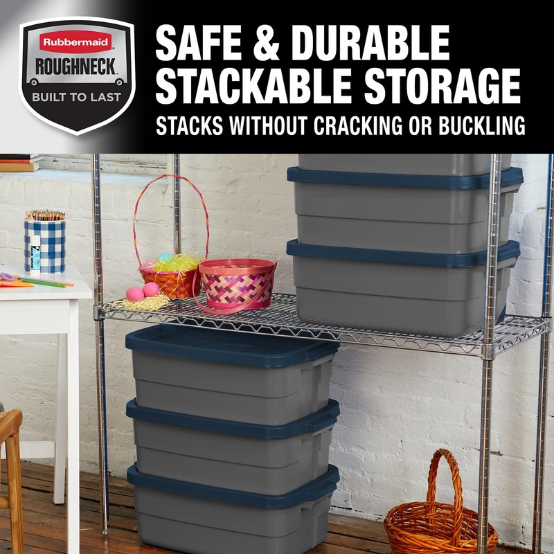 Rubbermaid Roughneck️ 10 Gallon Storage Totes, Durable Stackable Storage Containers with Lids, Nestable Plastic Storage Bins for Tools, Storage, Grey and Dark Indigo Metallic, 10 Gal - 6 Pack