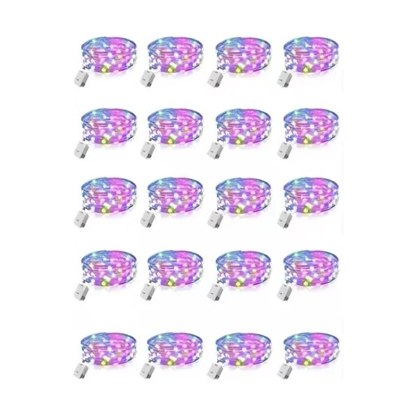 Cadena de luz micro LED con batería, 12 piezas, 2 metros, 20 cadenas de luz LED que funcionan con batería, cadena de luz de alambre de cobre impermeable IP65 para habitaciones, interior, Halloween, Navidad, fiesta, decoración de bodas