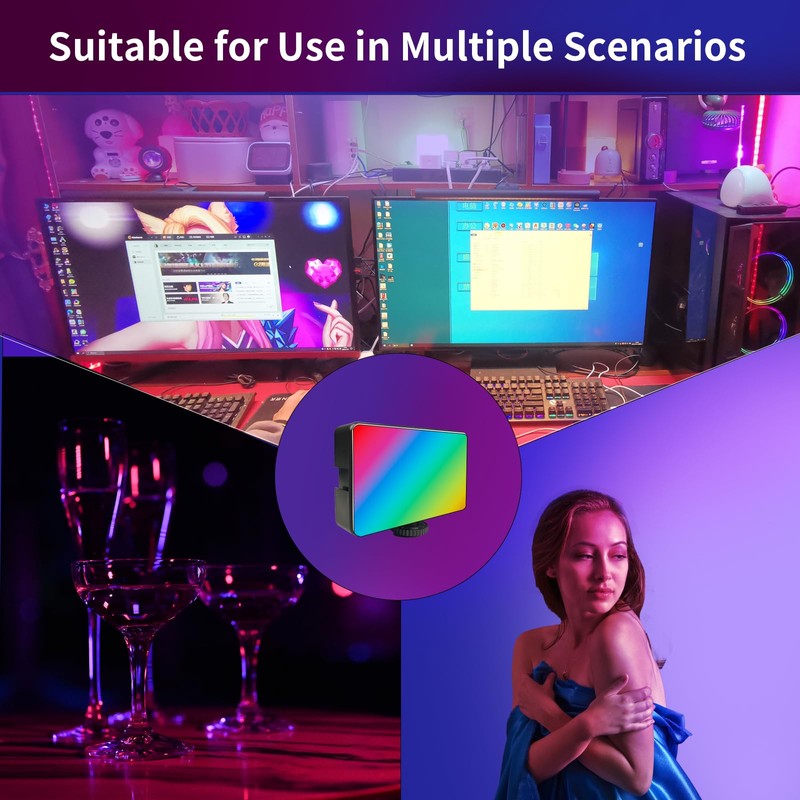 Full Color RGB Video light: This camera light built-in 140 high CRI lamp beads, RGB 0-360° full color, and color saturation adjustment, 2500-7000K color temperature control, warm, soft, cold light adjustable, light dimmable brightness,rubesee RGB Video Light Portable LED Camera Light for Photography with 3 Cold Shoe Mounts Studio Lights 2500K-7000K 1800mAh Rechargeable DSLR Lighting for Vlogging, Photography, Video Conference 0 to 100%, 48 kinds of light effects, which can meet many kinds of application scenario.