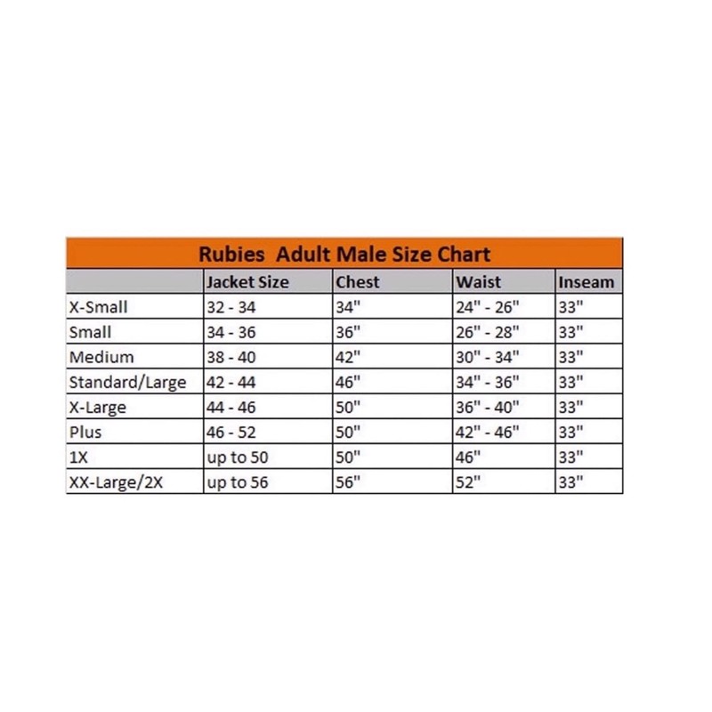 - IMPORTANT: Costumes are sized differently than apparel, use the Rubie’s Adult Male Size Chart, reviews and Q & A, do not choose based on clothing size