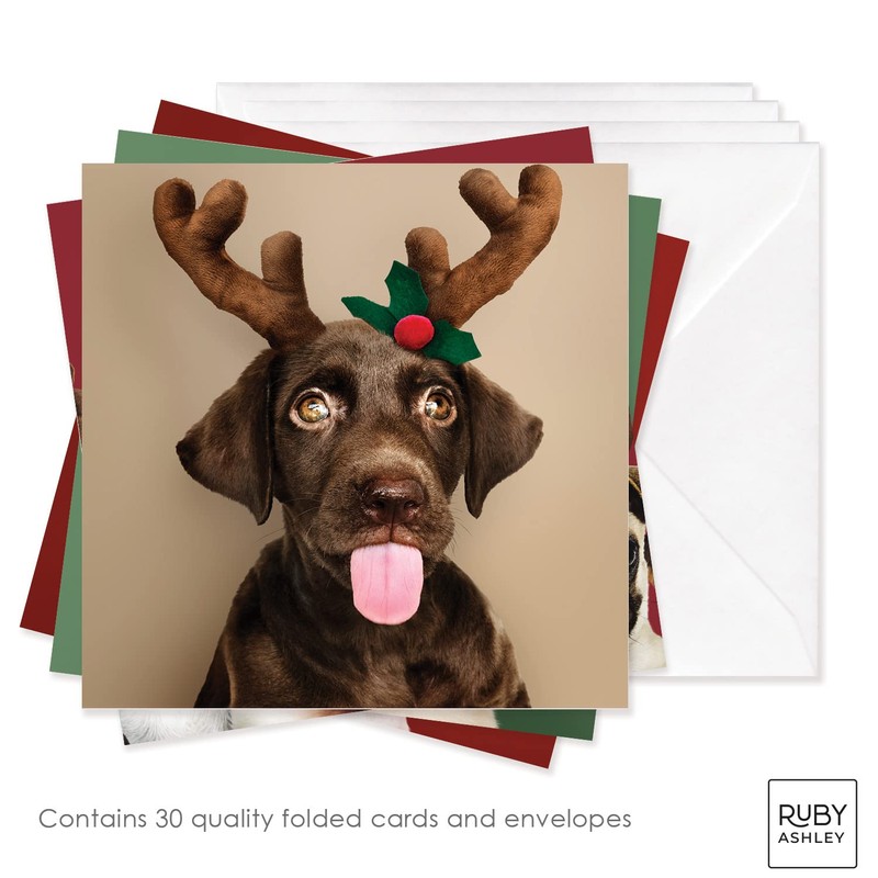 Ruby Ashley Charity Christmas Cards - Pack of 30 Xmas Cards. Quality Funny & Cute Dog Christmas Cards Multipack Made in the UK. Recyclable Boxed Christmas Cards & Envelopes