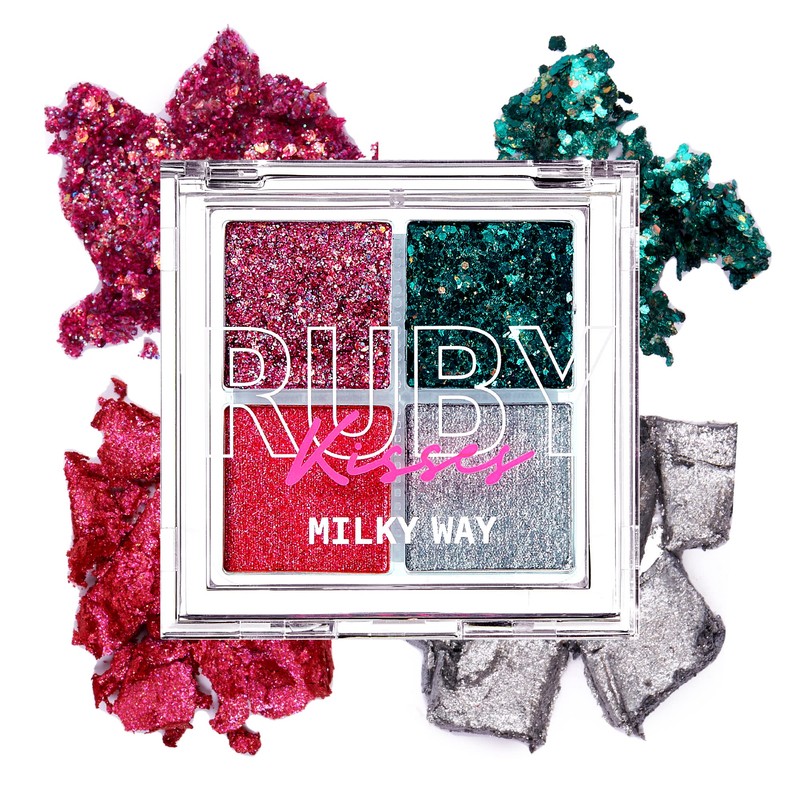 Ruby Kisses Glitter Gem Palette, 4 Shades Highly Pigmented Chunk Glitter, Buttery Texture, Long-Lasting Eye Makeup (Milky Way)
