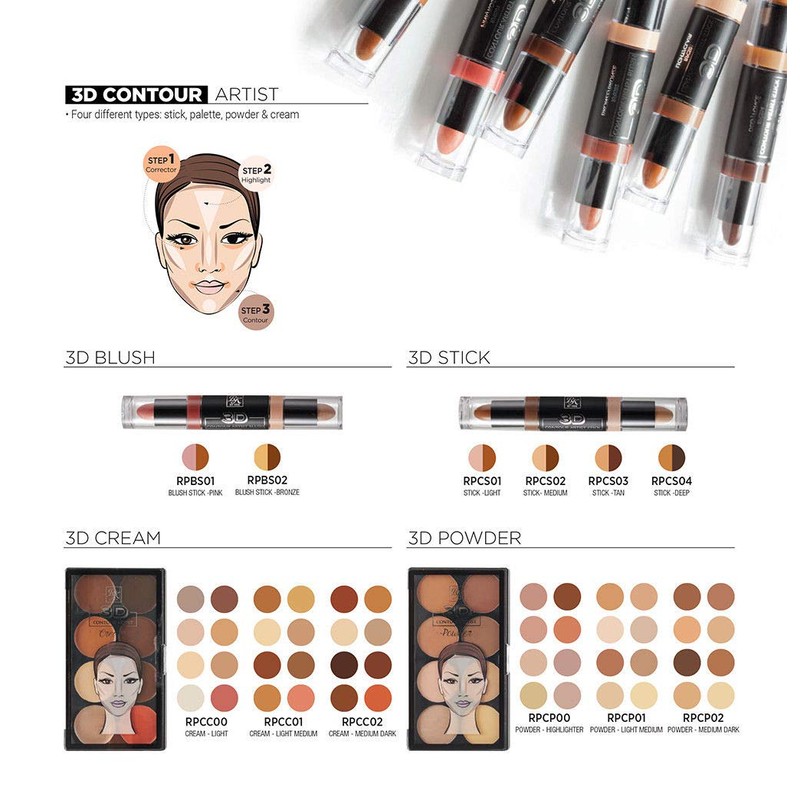 - This 3D Contour Artist Stick is available in four different shades to fit every skin tone.