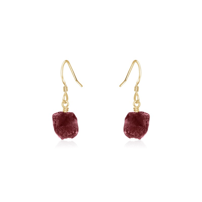 Ruby Raw Nugget Earrings in 14k Gold Fill