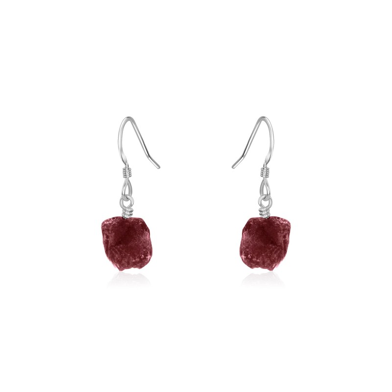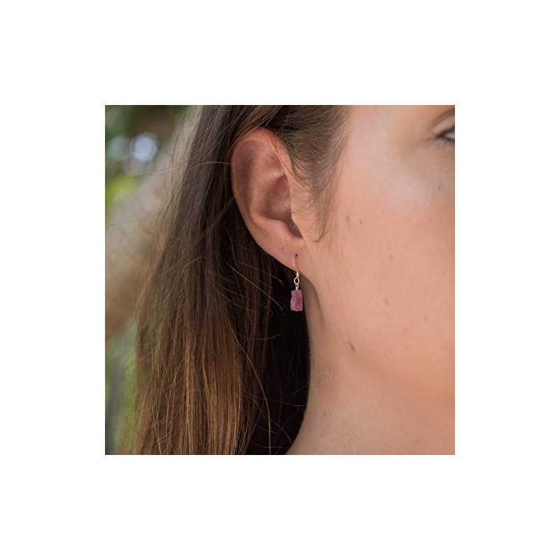 They feature raw, genuine ruby crystals that dangle from the ear wires.