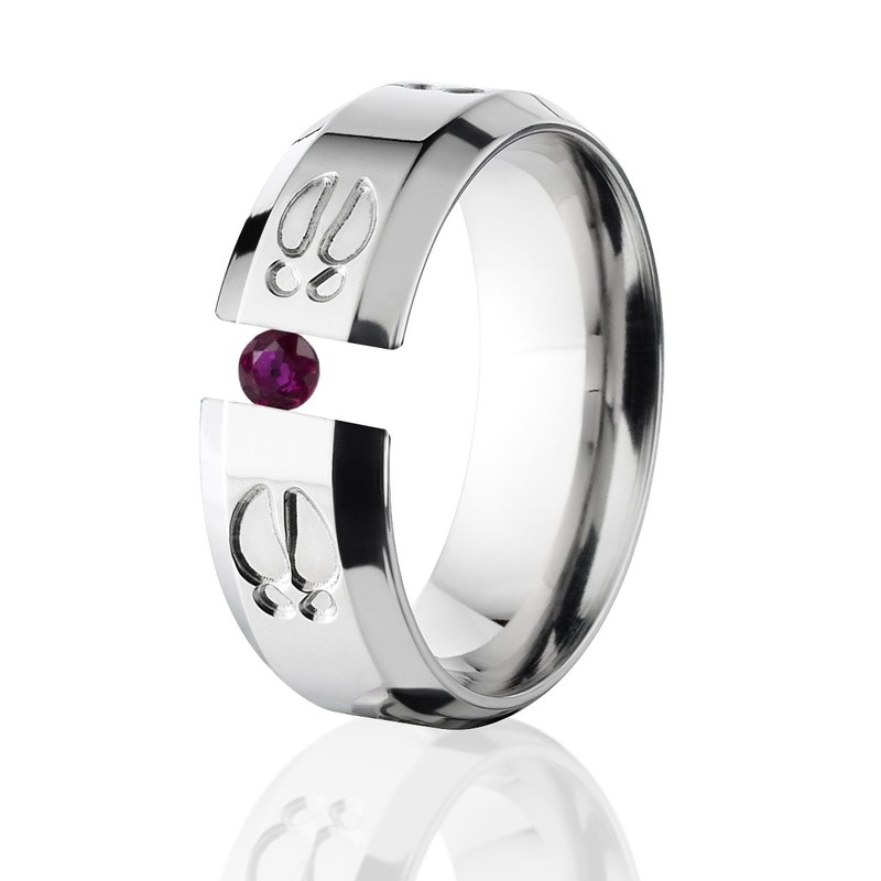 - Titanium Band 8mm Wide w/ Carved Deer Tracks - Comfort Fit