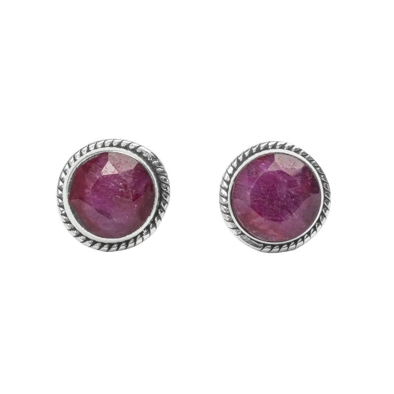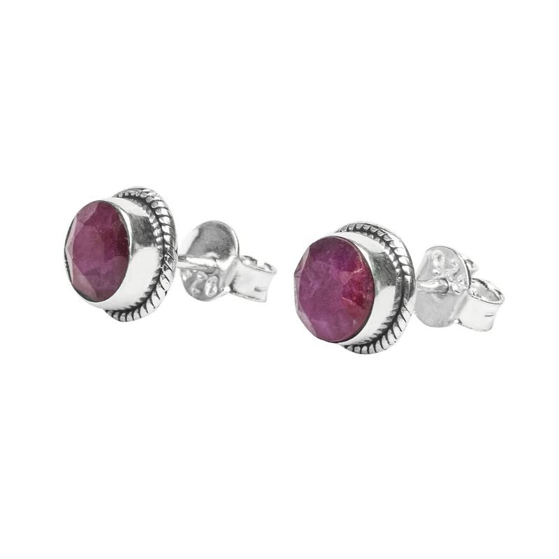 Ruby Stone Stud Post Earrings, 925 Sterling Silver Gemstone Earring 6 MM Round Girls Women Gift