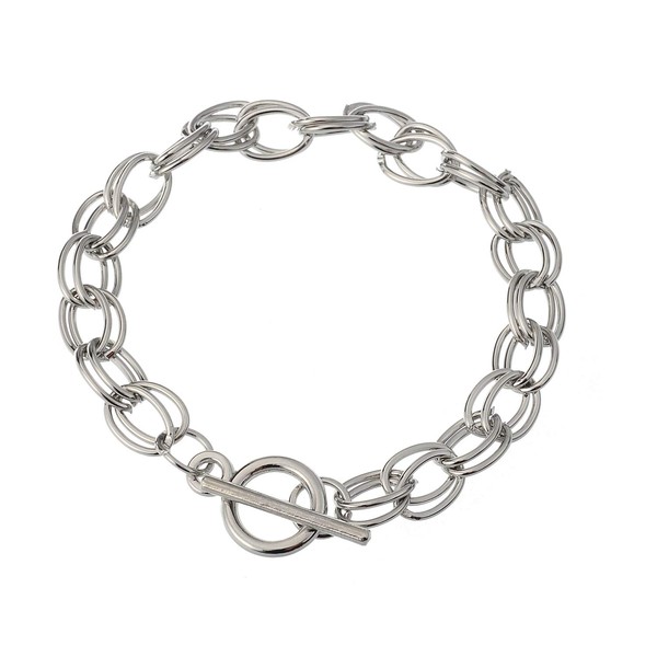 RUBYCA 10Pcs Toggle Clasp Silver Color Charm Rolo Bracelet Double Oval Link Chain 18cm DIY Jewelry