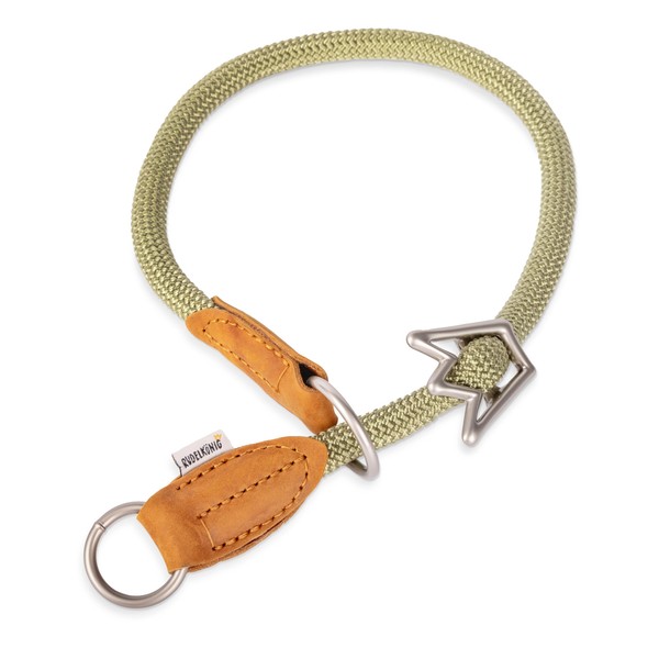 Rudelkönig Emma Dog Collar - Elegant Pull Stop Collar Made of Leather and Nylon - Diameter 12 mm - Comfortable Training Collar for Very Large Dogs in Khaki