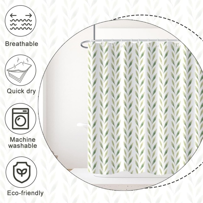 • [High-quality Material] The green shower curtain is made of polyester, soft and lightweight. Due to the waterproof coating on the surface, the shower curtain can effectively prevent water from splashing out of the shower stall.You can use it with the liner or alone.