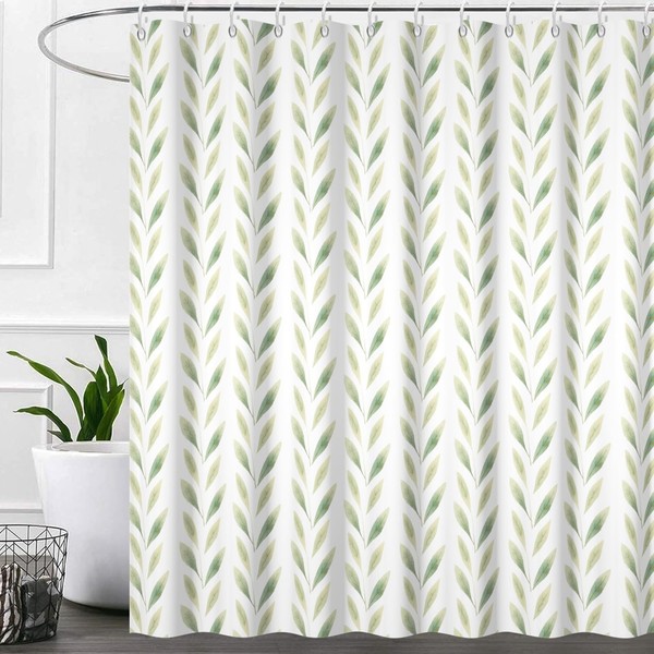 Ruelvth Sage Green Shower Curtain, Spring Green Leaves Shower Curtain for Bathroom Waterproof Botanical Shower Curtain Set with Hooks, 72x72 Inch