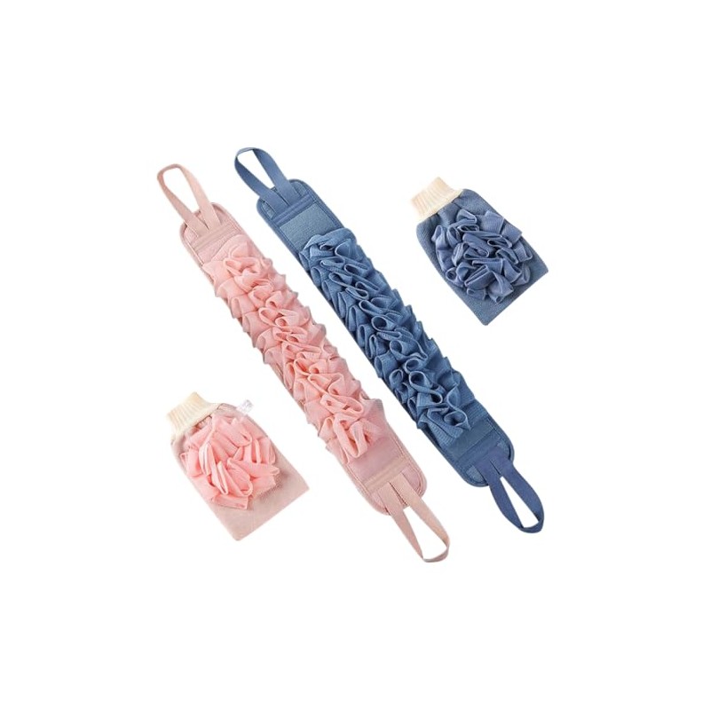 • SET CONTENTS: Complete bath set includes 2 back scrubbers and 2 wash mitts in pink and blue colors for a luxurious bathing experience