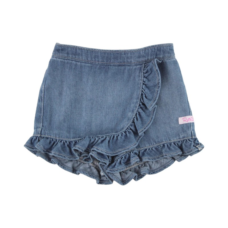RuffleButts Light Wash Denim Ruffled Skort - 3T