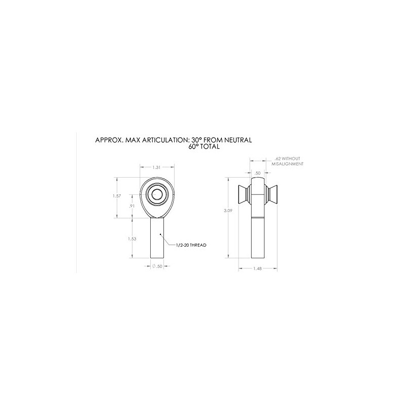 RuffStuff Specialties R1669 1/2 x 1/2 Inch Bore Chromoly Left Hand Threaded Spherical Rod Heim Joint
