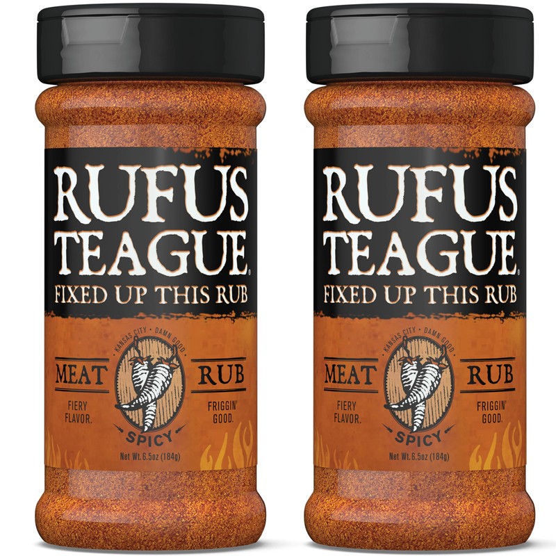 Rufus Teague Spicy Meat Rub, 2 Pack, Premium Barbecue Seasoning & Dry Rub for Smoking and Grilling, Award-Winning Flavor for Beef, Pork & Chicken, Gluten-Free, 6.5 oz