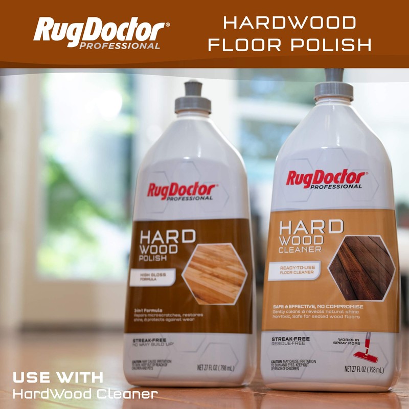 Rug Doctor Hardwood Floor Polish, 27 oz., Hi-Gloss Ready-To-Use Formula, Repairs, Restores & Protects Sealed Hardwood Floors, No Waxy Build Up