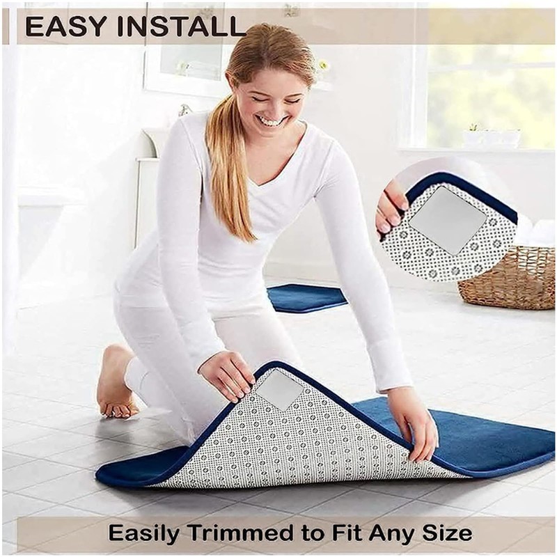 - 【Innovative Design for Secure Grip】This product can be easily adhered under any rug. The side facing the floor is equipped with tiny suction pores. These pores leverage , creating a low-pressure environment within the cups when pressure is applied from above. This creates an adhesive effect, keeping your rug firmly in place.