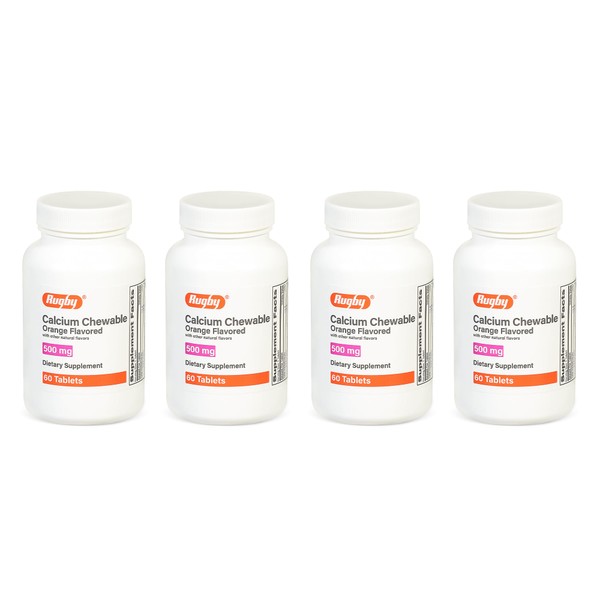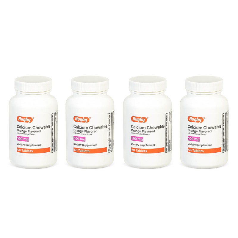 Rugby 500mg Calcium Chewable Tablets - Dietary Supplement - Orange Flavored - 60 Count (4 Pack)