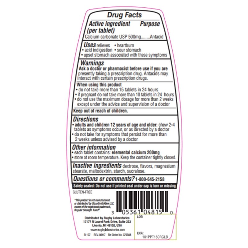 Rugby Calcium Carbonate 500mg Antacid Tablets Peppermint - 150 Chewable Tablets