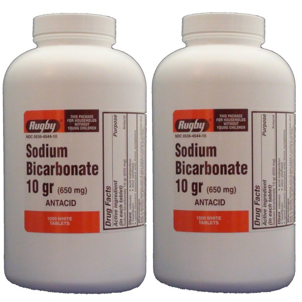 Rugby Sodium Bicarbonate 650 Mg Tablets (10 Grains) 1000 Tablets/Bottle 2 PACK Total 2000 Tablets (2)