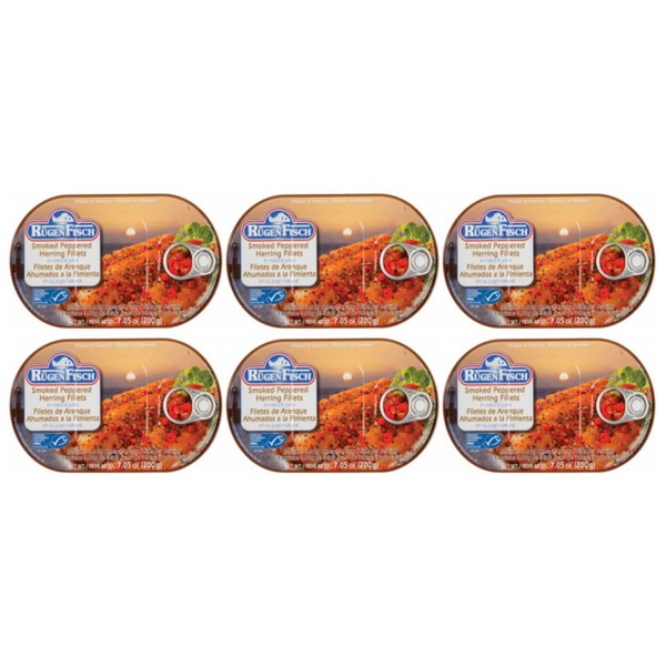 Rugen Fisch Herring & Mackerel Fillets Assorted Sauces (6 - PACK, Herring Fillets Smoked & Peppered)