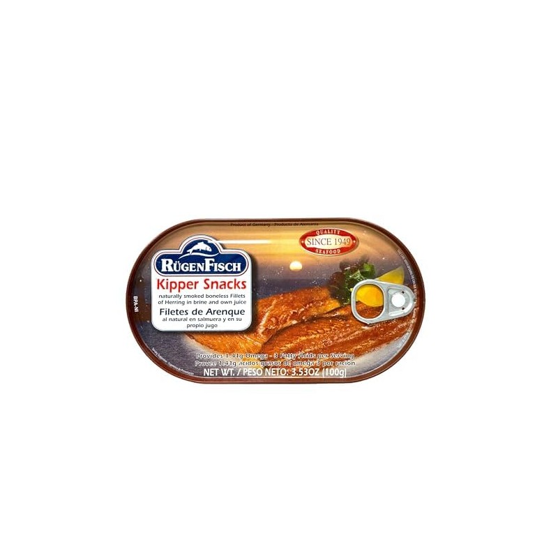 Rugen Fisch Kipper Snacks, Smoked Herring Fillets, 3.54 oz Cans (Pack of 3)