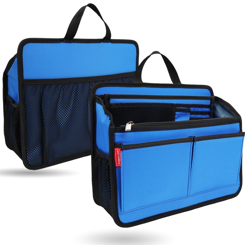 Rugged Organizer Insert for Briefcase Tote Shoulder Messenger Bag - 19 Pockets,Durable Padded Nylon,Handle (Small,Blue)