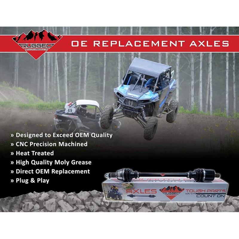• Rugged axle are built to withstand hard riding. They are made of chromoly steel, one of the industry’s toughest materials. It is redesigned the CV joints to handle high articulation angles. Through extensive lab and field testing, we’re able to deliver the best axle on the market. Easy To Install Backed By 1 Year Limited Warranty