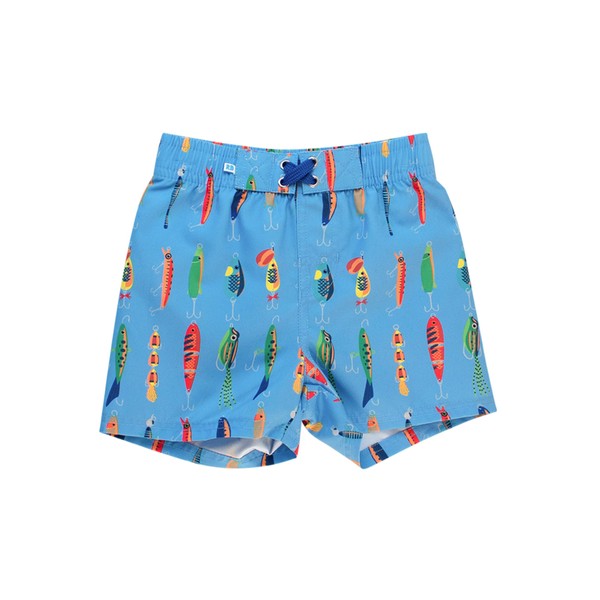 RUGGEDBUTTS Boys UPF50+ Sun Protection Animal Swim Trunks - Gone Fishin, 7