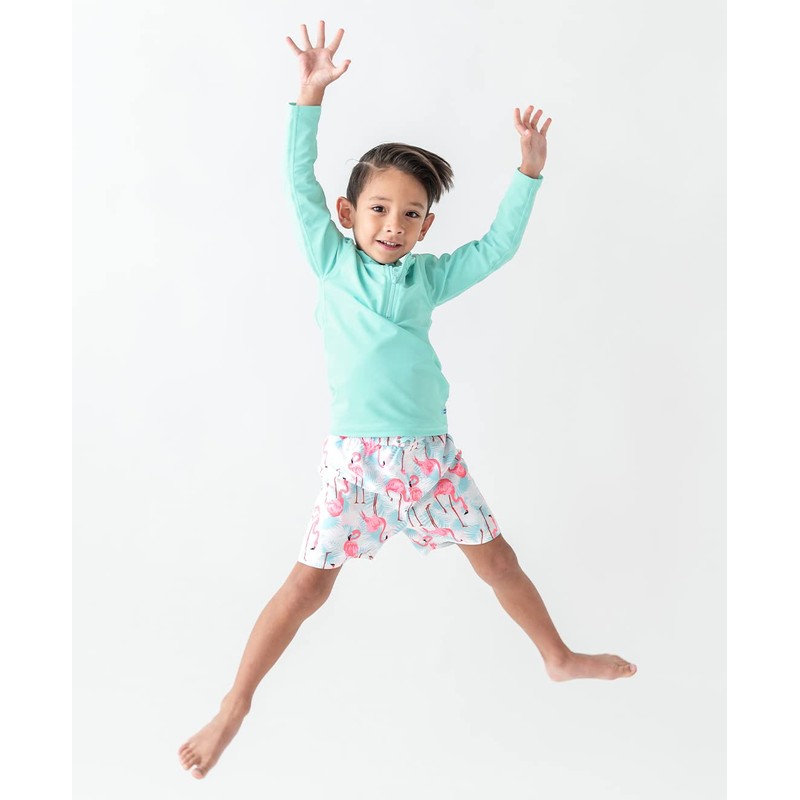 RUGGEDBUTTS Long Sleeve Zipper Rash Guard - Vintage Aqua - 4T