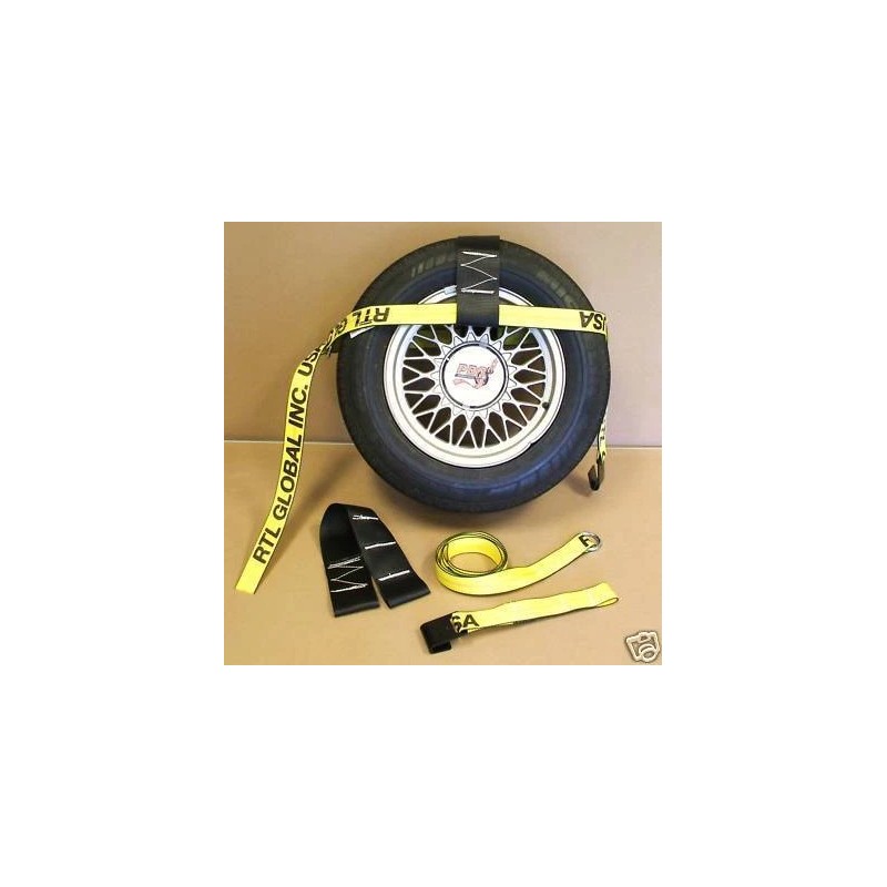 These straps are manufactured with 2" material around the tire and 4" material over the top, with 3 SPOTS where the winch strap can go through the top strap and 3 SPOTS where the cinch strap can go through the front strap with the flat hook. With these easy adjustments you can tow cars with wheels from 13" to 18". There is a winch strap on 1 end and a heavy duty 2" flat hook on the other end.