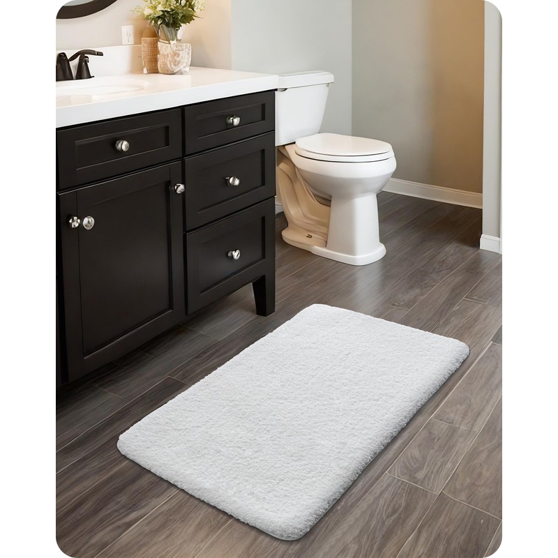 - [Highly Absorbent] This luxurious bathroom rug boasts a plush pile that delivers both a soft touch and rapid water absorption. As you step out of the bathtub post-bathing, the rug's fibers quickly draw the water from your feet, giving a dry and comfortable feeling.