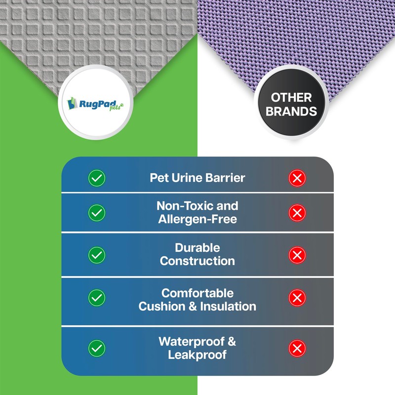 - PREMIUM NON-SLIP RUG PROTECTION – RugPadPets Non-Slip Rug Pad delivers outstanding grip and cushioning, making it the perfect choice for hardwood, vinyl, and concrete floors. Designed as a waterproof area rug indoor, securely in place, it’s ideal for entryway rugs, small rugs, dog proof rug, and carpet runners. This high-quality thick rug gripper pad provides superior protection, prevents rug curling, and enhances under-carpet padding for added comfort. Please note that the rug itself is not included.