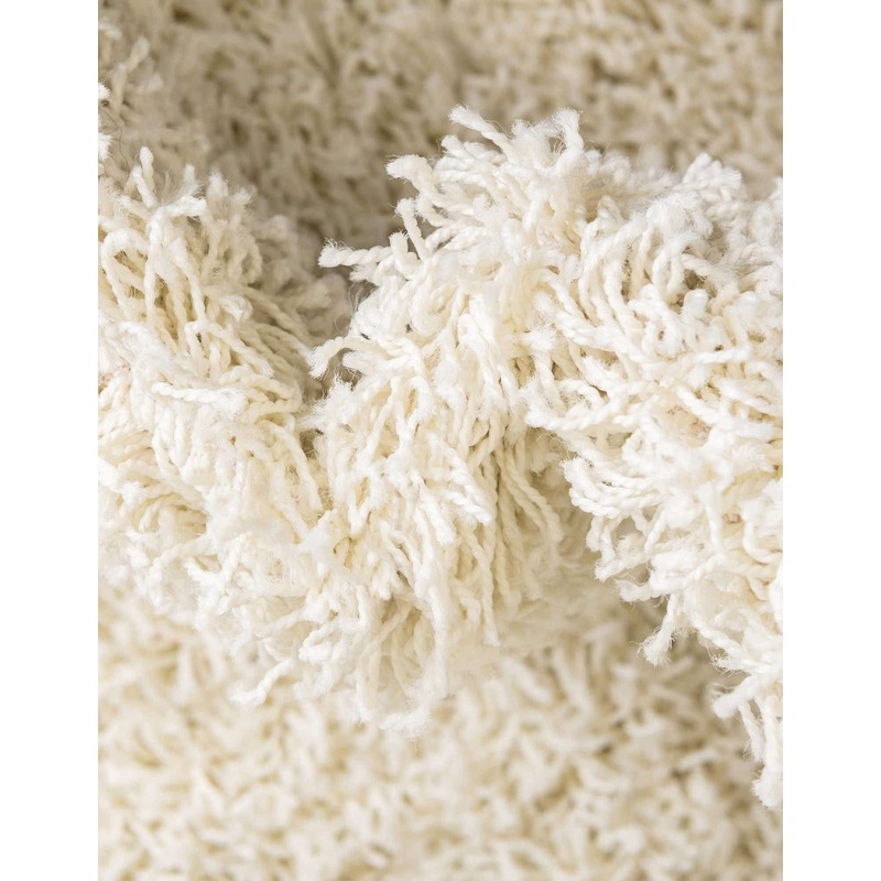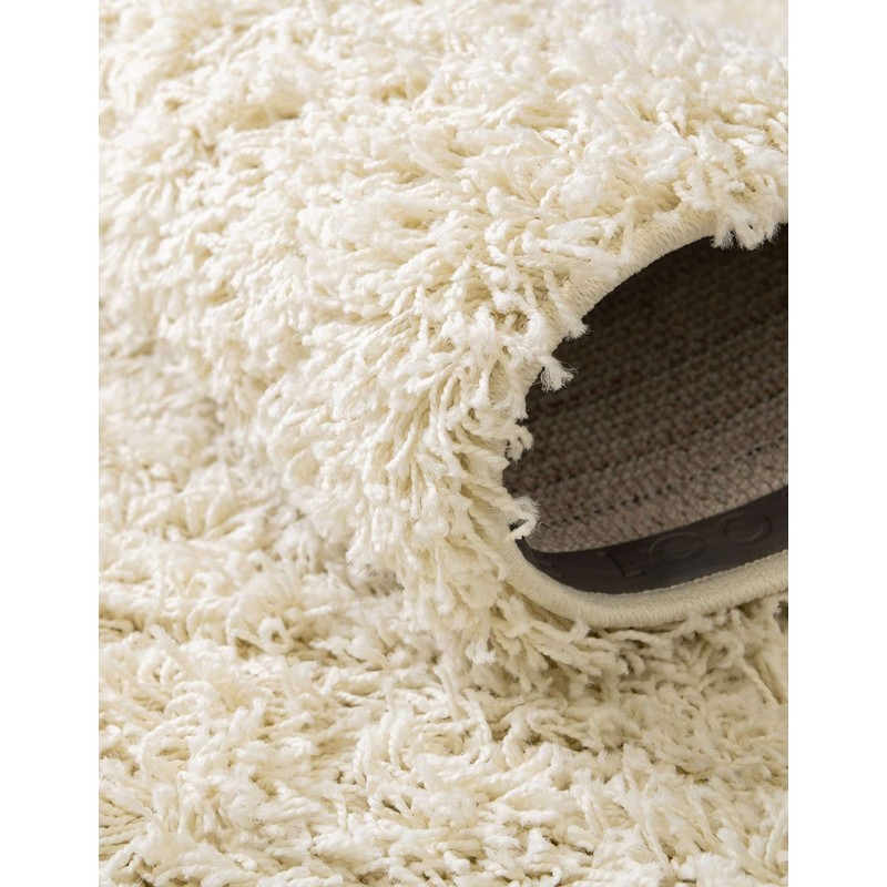 Rugs.com - Über Cozy Solid Shag Collection Rug – 3' x 5' Oval Pure Ivory Shag Rug Perfect for Living Rooms, Large Dining Rooms, Open Floorplans