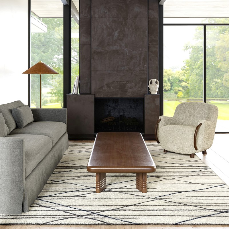 Rugs USA Pick-Up-Sticks Machine Washable Wool Area Rug, 4x6, Ivory