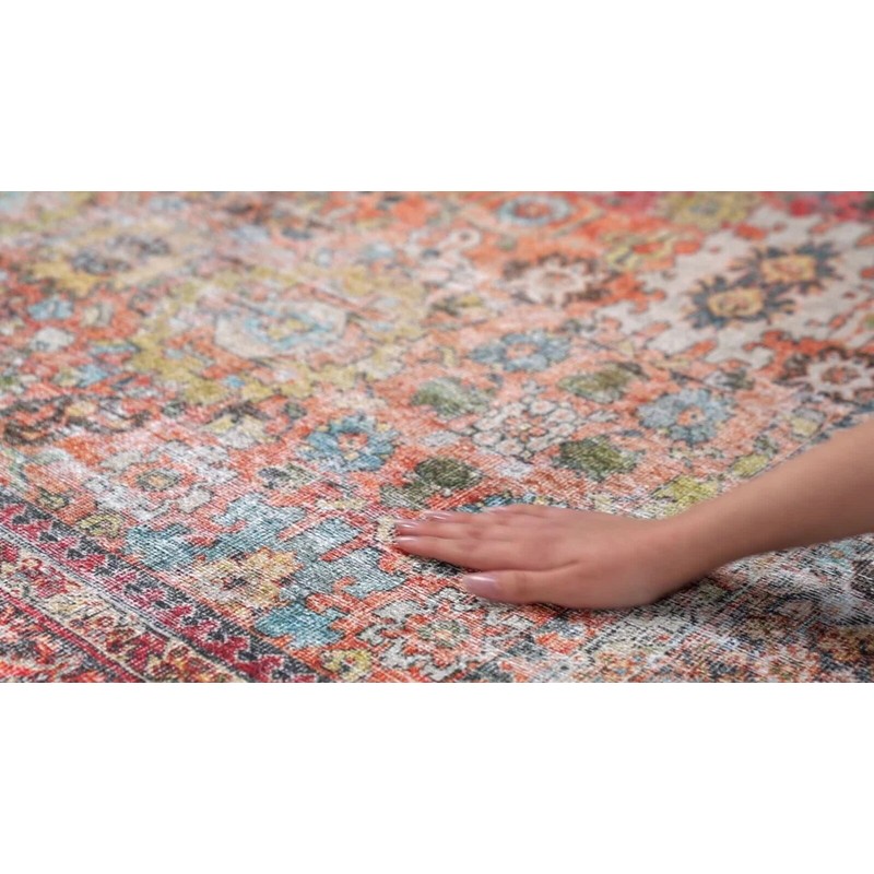Immerse yourself in the cultural tapestry of our machine-washable polyester area rug, featuring a seamless blend of global-inspired and traditional Oriental aesthetics. Revel in the comfort and resilience of this rug, ideal for both high-traffic zones and pet-friendly environments. The flat-woven construction ensures hassle-free cleaning, while the use of OEKO-TEX certified premium recycled materials underscores our commitment to style, tradition, and sustainable living.