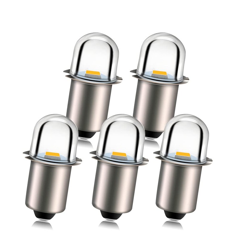 Ruiandsion LED Flashlight Bulb 18V P13.5S Base Socket Warm White LED Bulbs Replacement for Flashlight Torch Lights,Non-Polarity (Pack of 5)