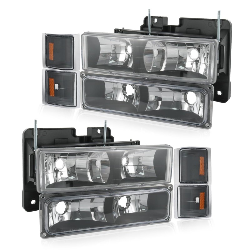 RUIANOMG Headlights Assembly Replacement For Chevy Silverado Suburban Tahoe C10 C/K 1500 C2500 C3500 1994-1998, Black With Amber Reflector