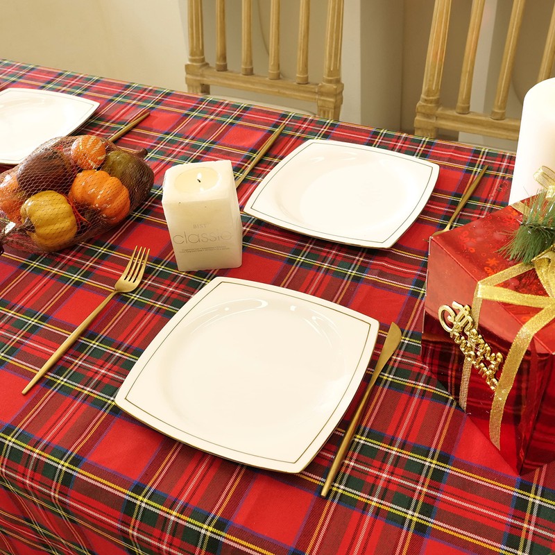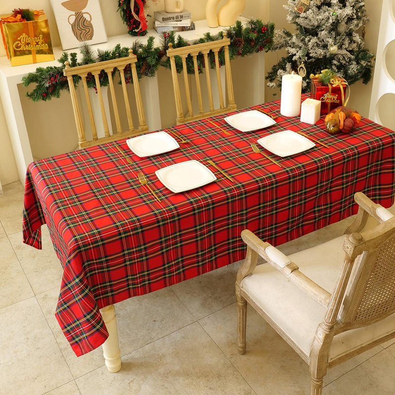 RUIBAO HOME Red Plaid Christmas Tablecloth for Rectangle Tables, 52x70 Inch, Yarn Dyed Polyester Table Cloth Perfect for Holiday Parties, Outdoor, Dining and Banpuet (Christmas Red Plaid, 52inX70in)